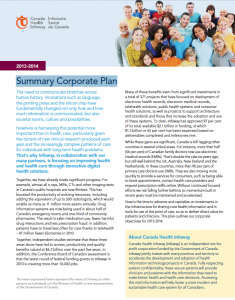 Infoway says: collaborate, improve health and care and do this through innovative digital solutions. Click here to download their Summary Corporate Plan (2013 -2014).