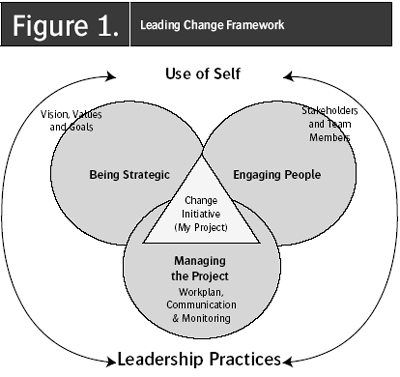As the framework indicates, the first requirement for successful change leadership is Being Strategic - in the choice of a project and the timing of it; generating enthusiasm by the development of a compelling vision and values to guide the change; and being clear about the need for change and the desired outcomes.