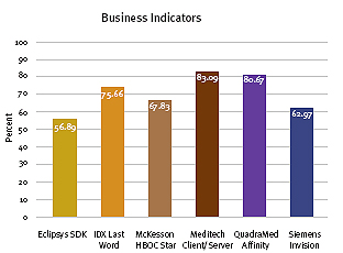 Of the vendors surveyed, the top three ratings went to #1 QuadraMed Affinity, #2 IDX LastWord, and #3 Meditech Client/Server.