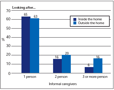 These data provide convincing support to the argument that a substantial portion of long-term care is being borne by unpaid caregivers. As these care givers themselves age and require assistance, the financial and human resource pressures on the paid home sector are likely to increase substantially.