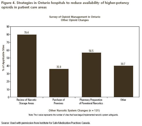 Institute for Safe Medication Practices Canada. 2005. Medication Safety Support Service Narcotics (Opioids) Project: System Safeguards to Prevent Error-Induced Injury with Narcotics (Opioids). Toronto, ON: ISMP Canada.