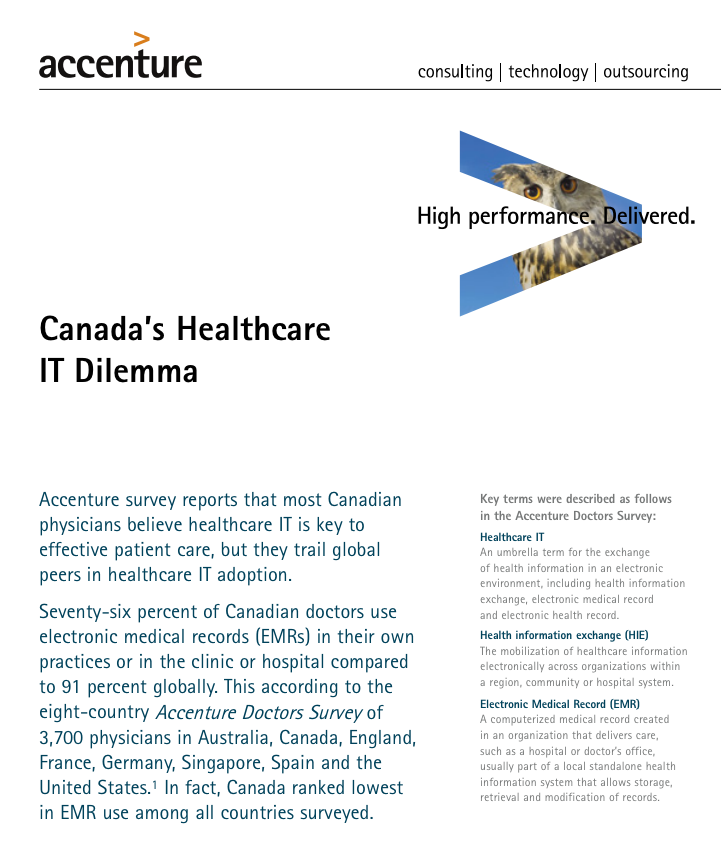 Accenture survey reports that most Canadian physicians believe healthcare IT is key to effective patient care, but they trail global peers in healthcare IT adoption.