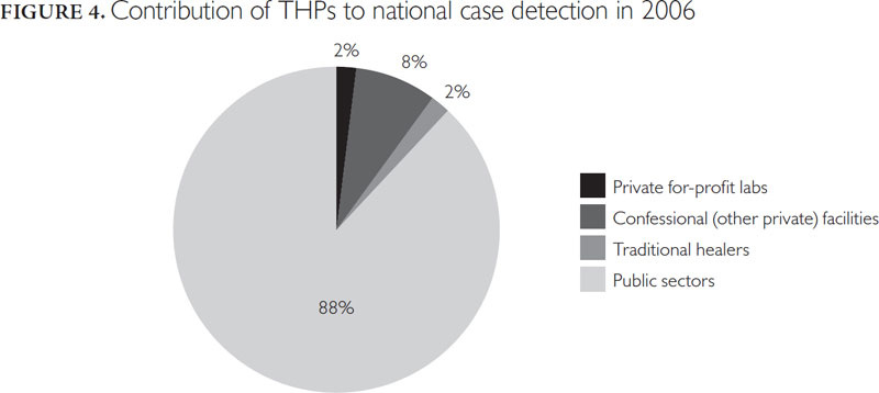 Given the national figures of new smear-positive cases detected for 2006, the contribution of THPs was assessed and compared to that of other major private providers involved in collaboration with the National Tuberculosis Program (Figure 4).